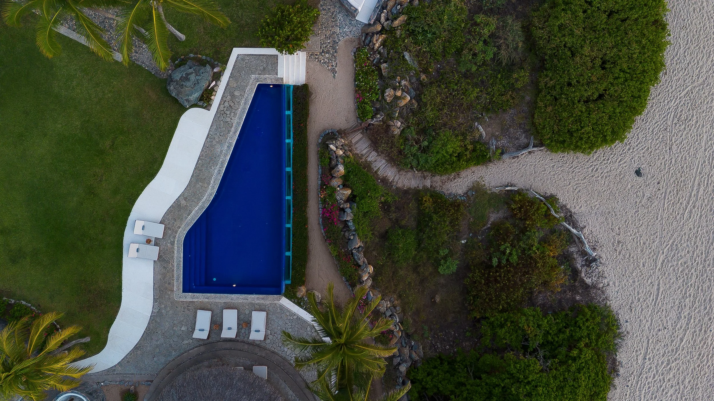Enjoy refreshing swims, lounge poolside with sweeping ocean views, or unwind beneath the palapa, complete with a convenient wet bar and generous shade- perfect for sipping a drink and lingering comfortably out of the sun. The palapa is also the ideal spot for a sunrise meditation or yoga practice, perfect for wellness retreats.