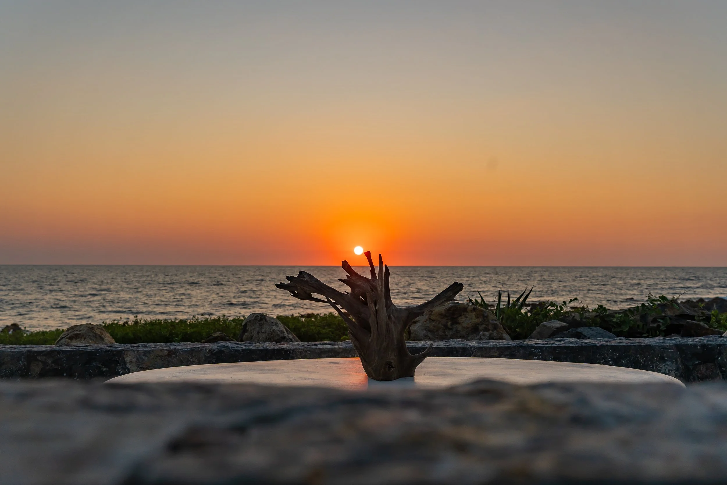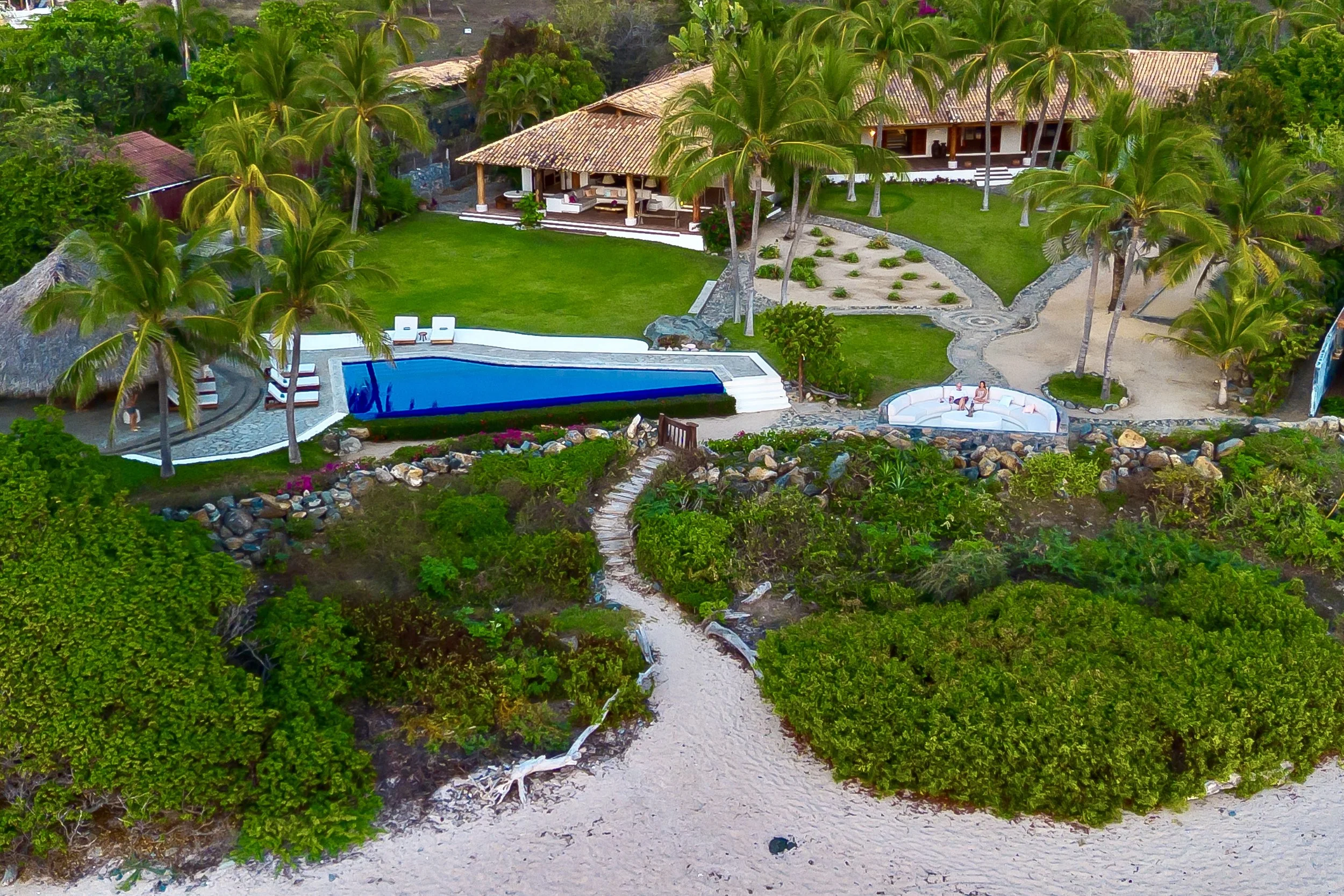 Casa Las Tejas’s exceptional outdoor entertainment spaces include a spectacular 60-foot infinity pool complemented by a generous-sized palapa with a wet bar, and a hand-cut stone sunset terrace perfectly positioned just above the beach.